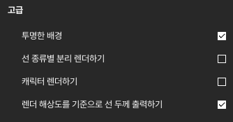 활성: 렌더 해상도를 기준으로 설정한 선 두께가 반영됩니다. 렌더 해상도를 높일수록 선이 더 얇게 보이게 됩니다.